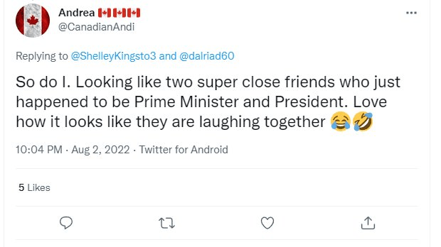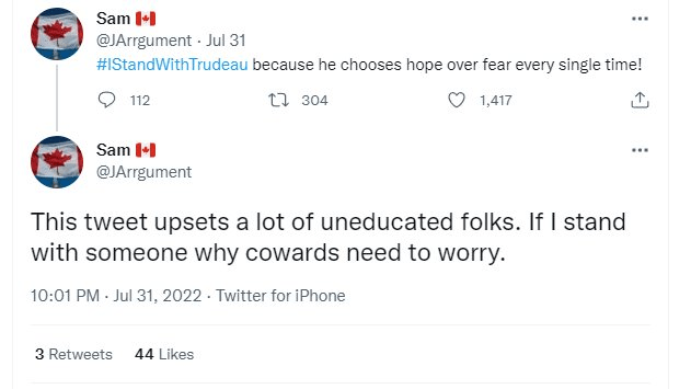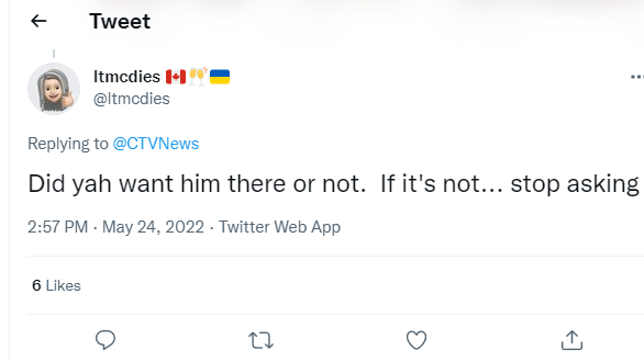 Of course, one should always take a handle like Mr. Nice Guy 420 with a grain of salt, but if one looks at Twitter comments and general supporters of Trudeau, one sees similar attributes. Drinks, masks, Ukraine, LGBTQIA+, are all significant signs of ‘current thing-ism‘ which is an attribution given to boomer women, and some men who support whatever current thing is being presented through communication channels such as CNN, MSNBC, The View, or wine mom Twitter.